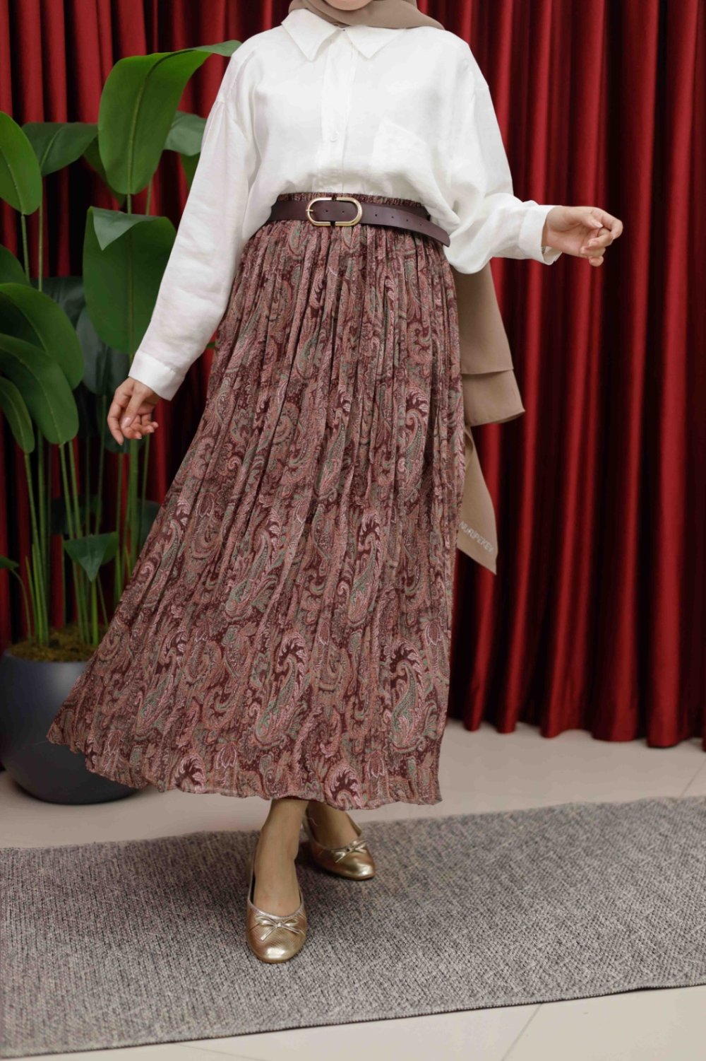 DESENLİ ETEK - BORDO Bordo