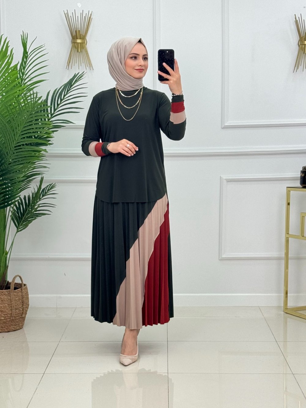 Gökkuşağı Etekli Takım Haki