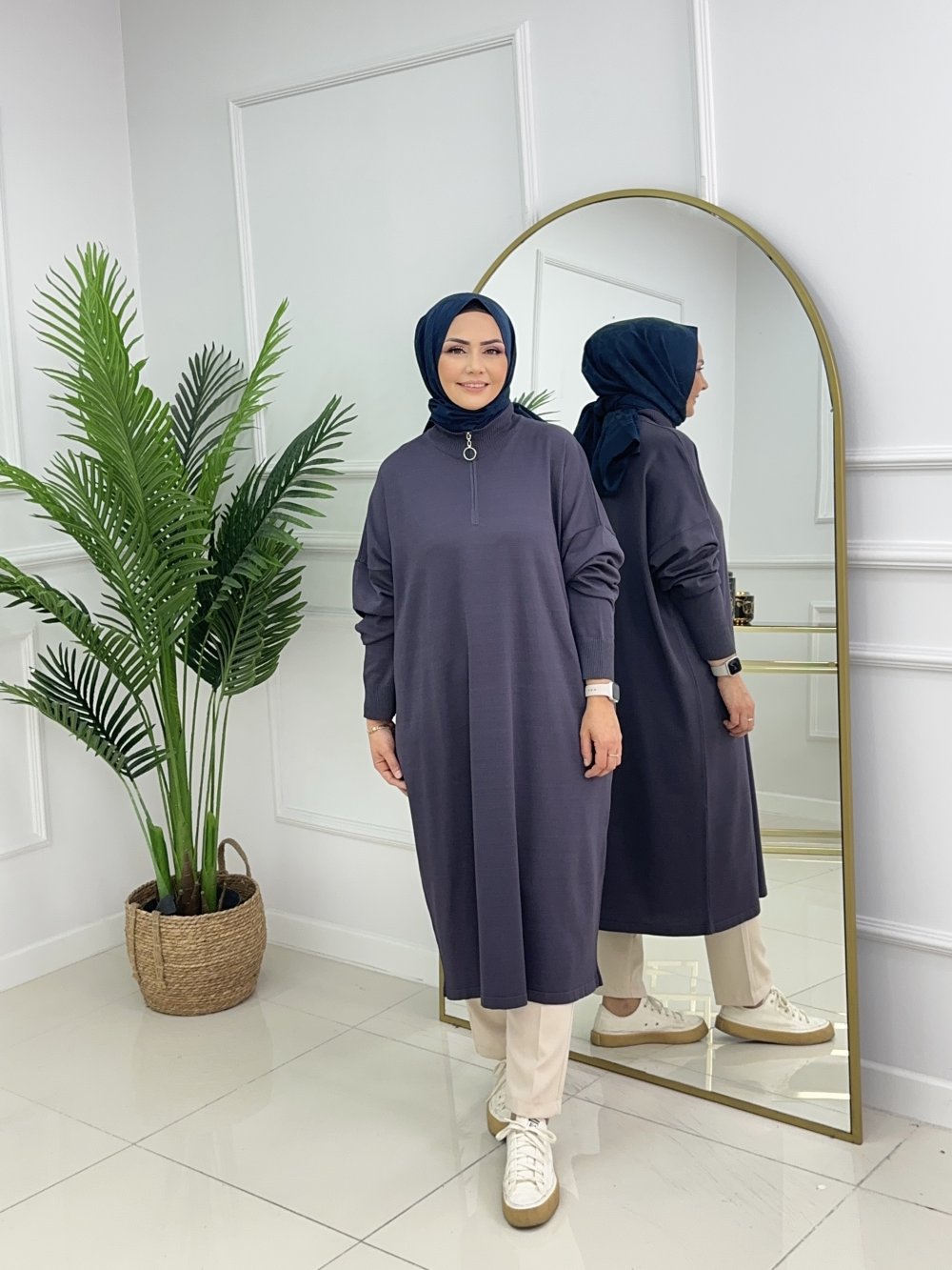 Basıc  merserize tunik; nefes alan dokusu ve rahat kalıbıyla her kombine uyum sağlar.