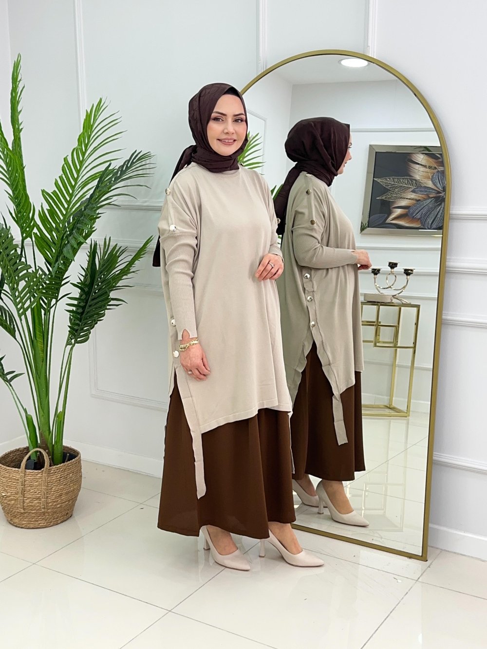 LUMİA MERSERİZE TUNİK - BEJ Bej
